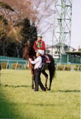 <写真は日経賞の競走を終えたバルクと千葉騎手>