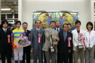 表彰式で武豊騎手は6月25日に行われる宝塚記念でディープインパクトに騎乗しホッカイドウ競馬のコスモバルクとの対決について聞かれると「負けないようにがんばります。」と笑顔で答え場内も盛り上がりました。