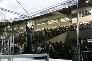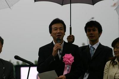 旭川競馬場に前川清さん来場! 2006.07.07 時折強い雨の降る旭川競馬場に前川清さんが来場。1日旭川競馬場長として、表彰式プレゼンターやパドック解説とあわただしい旭川での日程をこなしました。記者会見では「忙しいなぁ、でもみんな優しくて、旭川競馬場はいいねえ」と大サービス。全レース終了後の歌謡ショーでは新曲「窓」をはじめとする8曲を披露。約800人の前川ファンを魅了しました。