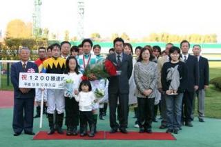 10月26日、札幌競馬第2レースで1,200勝を達成した宮崎光行騎手(松本隆宏厩舎)の表彰式が、10月31日、札幌競馬場ウィナーズサークルで行われ、多くのファンや関係者のほか、宮崎騎手の家族からも祝福を受けました。