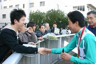 表彰式終了後には、宮崎騎手から集まったファンに花束やサイン色紙がプレゼントされました。