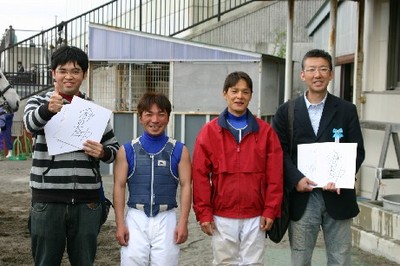 下:川島雅人騎手・秋田大助騎手からサインをもらい記念撮影