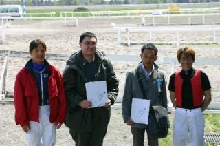 下:服部茂史騎手・川島雅人騎手と一緒に記念撮影