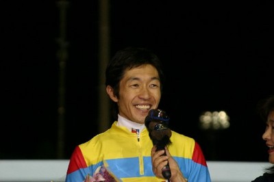 中:優勝インタビューを受ける武豊騎手
