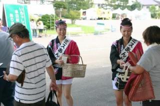 上:ミスあんどんがポケットティッシュを配付