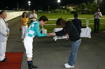 中:宮崎騎手へトロフィーの贈呈