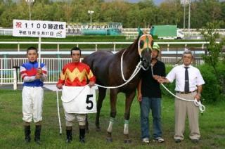 9月11日、坂下秀樹騎手(原孝明厩舎)が、旭川競馬第5レース マキハタタイムリーに騎乗し、昭和61年のデビュー以来、8,392戦目で通算1,100勝を達成しました。