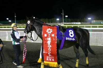 セイウンドーバーは、4コーナーから徐々に位置を上げ、直線で前を行くファインドロップをかわし、そのままゴール!