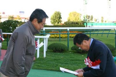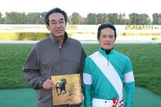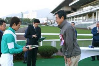 第43回 スタリオン競走表彰プレゼンター 2007.10.17 10月17日、札幌競馬場で「第43回 スタリオン競走表彰プレゼンター」が行われました。 第43回目は「アグネスワールド賞」で、様似町のファンがプレゼンターを務め、優勝馬ウォータージェニーの米川伸也調教師(馬主代理)と川島雅人騎手にそれぞれ記念品を贈呈しました。 また、プレゼンターには、 社台スタリオンステーションから提供された『種牡馬パンフレット』が贈られました。 写真 上:米川伸也調教師へ目録贈呈 中:川島雅人騎手へトロフィー贈呈 下:川島雅人騎手との記念撮影
