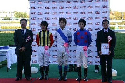 下:第2戦「シルバーホイップ賞」表彰式 上位騎手3名