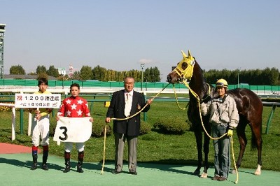 10月24日、五十嵐騎手(桑原厩舎)が、札幌競馬第2レース モエレカトリーナに騎乗し、平成5年のデビュー以来、7,820戦目で通算1,200勝を達成しました。