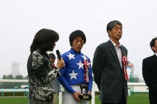 中:優勝インタビューを受ける三井騎手