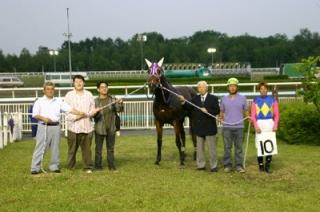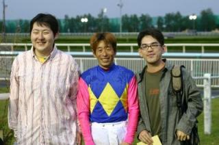 第5回 優勝馬との写真撮影体験! 2008.06.19 6月19日、旭川競馬場で「第5回 優勝馬との写真撮影体験」が行われ、 札幌市と帯広市のファンが写真撮影を行いました。 参加者は、第8レースの優勝馬アドミラルマドンナ号、服部茂史騎手らと口 取り写真に参加しました。 写真 上:優勝馬アドミラルマドンナと口取り写真 下:服部茂史騎手と記念写真