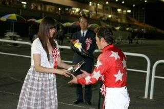 を務め、優勝馬チェリーゴロンタの廣森久雄調教師(馬主代理)と五十嵐冬樹