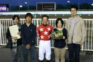 ターを務め、優勝馬スカーレットリバーの馬主 鹿戸照美氏と五十嵐冬樹騎手にそ