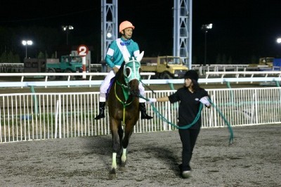 上:勝利直後のネフェルメモリー号と川島雅人騎手
