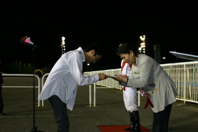 第28回目は「グラスワンダー賞(サマーチャレンジⅡ競走)」で、埼玉県のファンがプレゼンターを務め、優勝馬モエレビクトリー号の馬主と佐々木国明騎手にそれぞれ記念品を贈呈しました。