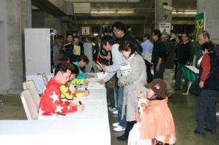 サイン会には多くのファンが集まり、4名から順番にサインをもらったり、握手をしていました。