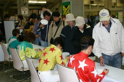 10月14日、旭川競馬場でホッカイドウ競馬の騎手によるサイン会を行いました。