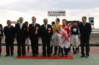 10月28日、旭川競馬場で10月9日に1300勝を達成した五十嵐冬樹騎手(桑原義光厩舎)の表彰式が門別競馬場スタンド正面パドックで行われ、多くのファンや関係者の祝福を受けました。