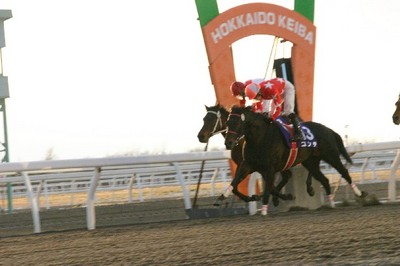 11月20日、門別競馬場で本年度のホッカイドウ競馬のフィナーレを飾る『第51回 道営記念』(サラ 一般オープン 2,000m)が行われ、五十嵐騎手騎乗のコンテ(角川厩舎)が2分10秒8で勝利!