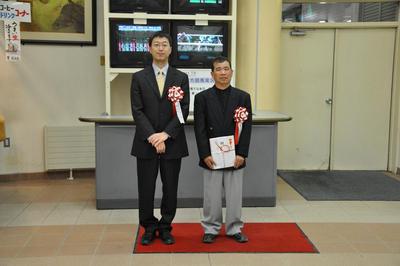 本日のメインレースは、スタリオンシリーズ「ブラックタイド賞」が行われ、同スタリオンを管理する(株)サラブレッド・ブリーダーズ・クラブの遠藤幹業務部長が昨日に引き続きパドックのゲスト解説に登場。また、レース終了後には表彰式のプレゼンターも務めていただきました。