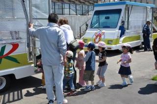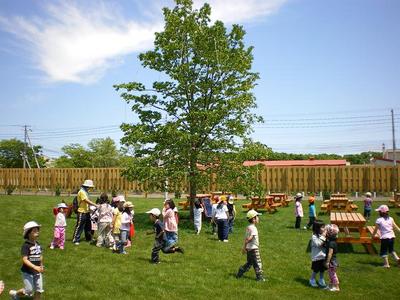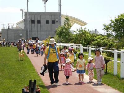 本日(6月12日)、日高町富川南にある富川二葉保育所の子供達80名が、門別競馬場に遊びにきてくれました。この日は、前日の大雨とうってかわっての快晴に恵まれ、電気自動車「ホクトくん1号・2号」に乗車したり、芝のオープンスペース「とねっこ広場」で元気よく遊んでいました。子供達も喜んでくれたようで、帰るときには、園長先生から「また門別競馬場に来たい人」との問いかけに全員の園児達が笑顔で手をあげ、「また、来た~い」と元気な返事を残して、門別競馬場を出発しました。これからも、団体での「とねっこ広場」等のご利用をお待ちしております。