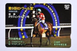 第9回エトワール賞優勝馬クラフィンライデン号の馬主倉見利弘様のご提供により、優勝記念オリジナルクオカードを抽選で5名様にプレゼントいたします。