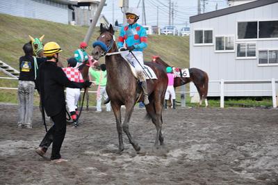 写真:レース後のシルクポーラスター号(桑村騎手)