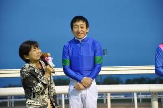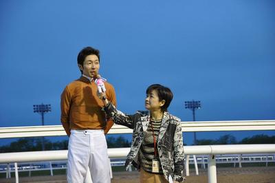 JRAジョッキーインタビュー 2009.06.18 6月18日、第13回北海道スプリントカップ(JpnⅢ)[クロフネ賞]に騎乗予定の武豊騎手、藤田伸二騎手、横山典弘騎手の3名が9R終了後にウイナーズサークルでジョッキーインタビューに参加していただきました。門別競馬場に来場の大勢のファンの方々にむけて、リニューアルとなった門別競馬場「グランシャリオナイター」についての印象や感想などを話していただきました。