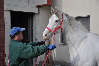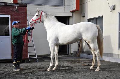 このたび、ホッカイドウ競馬に来年デビュー予定の白毛の牝馬(1歳馬)が米川伸也厩舎に入厩しました。父は、日本で最初の白毛競走馬で勝利を挙げたハクホウクン。母はハクバノイデンシ・ハクバノデンセツと2頭の白毛馬を生んだフラッシュリリー。