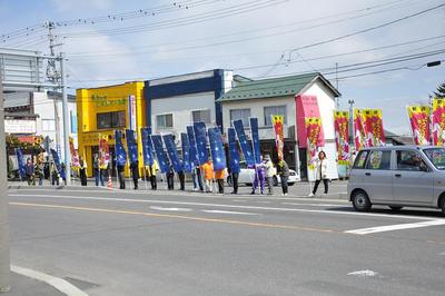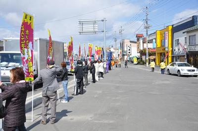 4月26日(月)、ホッカイドウ競馬開幕にむけて、地元日高町の国道沿い(235号線と237号線の交差点)で街頭PRを実施しました。