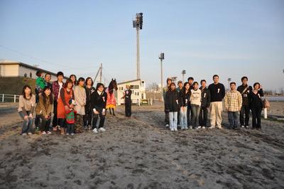 写真1 関係者との撮影(左から岡田繁幸氏、岡田美佐子オーナー、田部和則調教師、鹿島秀樹厩務員、榎並健史厩務員)