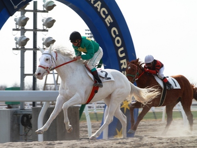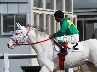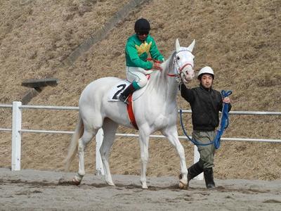 本日(4月7日)の能力検査第12競走に、白毛の牝馬ハクホウリリー号(牝3歳、齊藤正弘厩舎、父:ハクホウクン)が出走し、基準タイム(1分09秒0)を上回る1分07秒8のタイムで合格しました。
