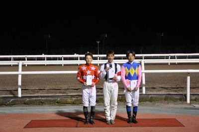 結果は、第8レース,第9レースを優勝した小嶋久輝騎手が総合40ポイントで優勝しました。第2位は、第8レース,第9レースを2着となった服部茂史騎手が30ポイントを獲得。第3位は、第8レース,第9レースを4着となった五十嵐冬樹騎手が22ポイントを獲得しました。