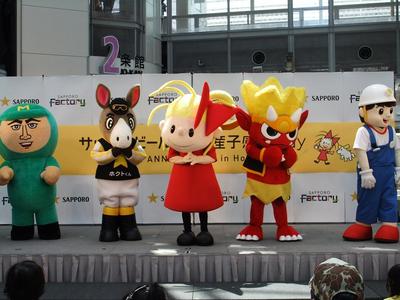 7月2日リボンナポリン生誕100周年記念イベントがサッポロファクトリーで開催され、道内のキャラクター達が勢揃い。ホッカイドウ競馬のホクトくんも参加し、クイズ大会やお祭りの盛り上げに一生懸命頑張りました。このイベントは7月3日も行われますので、お近くのかたは是非ご参加ください。
