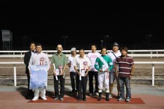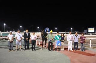第9競走サイアーラインのパドック解説ゲストとして、静内軽種馬生産振興会青年部長 藤川正仁氏が出演し、サイアーラインポスターのPRや注目馬の1頭を紹介。レース終了後には、表彰式のプレゼンターを務めて頂きました。