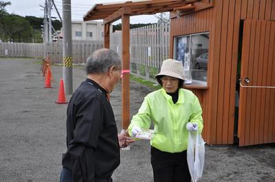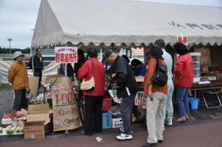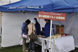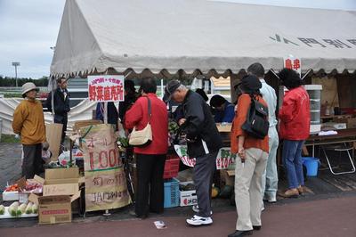 グランシャリオ☆秋の収穫祭(最終日) 2011.09.22 門別競馬場では、「グランシャリオ☆秋の収穫祭」の最終日として、開門に「観光宣隊しんとくレンジャー」メモ帳とティッシュが先着100名様にプレゼントされました。 とねっこ広場では、ひだか特産市や余市フルーツフェア、北海道ご当地グルメ屋台などが3日間通して出店。 また、本日限定イベントとしてJA門別女性部による自家栽培野菜の販売や新千歳空港グルメ出張販売などが行われました。