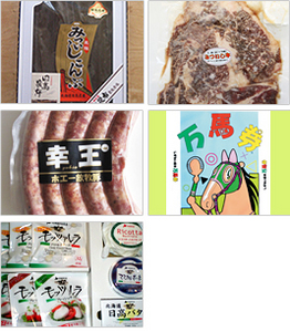 【特   典】 日高みついし昆布、みついし牛、「日高乳業」乳製品詰合せセット、ホエー放牧豚で作ったソーセージ「幸王」数種類、静内産米「万馬券」の詰合せセット [15名様]