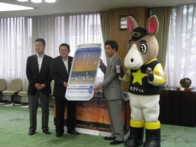 「HOKKAIDO競馬缶」の発売に伴い、昨日、北海道庁3階の知事会議室で、サッポロビール株式会社北海道本社 代表 泉山俊彦様から高原陽二副知事へ贈呈式が行われました。
