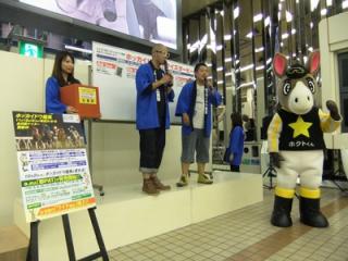 9月30日(日)、JRAウインズ札幌A館1階でホッカイドウ競馬のPRイベントを行いました。ホッカイドウ競馬クイズダービーの公開プレゼント抽選会では札幌よしもと所属「しろっぷ」が司会進行を務め、大いに盛り上がりました。