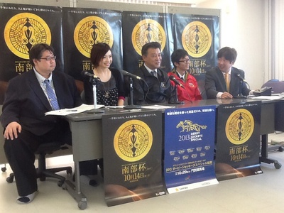 また、当日イベントでは、「豪華ゲストによる予想トークショー」や11月4日開催“JBC2013金沢”を盛り上げよう!!「JBC特製マフラータオル先着プレゼント(数量限定)&握手会」などさまざまなイベントが行われているなかで、「食欲の秋到来!岩手“秋の味覚”大抽選会」が行われ、豪華プレゼントのなかに、ホッカイドウ競馬のコインケースもプレゼントされました。