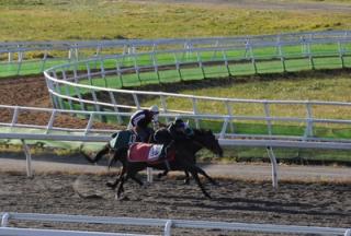 11月16日(土)JRA東京 第11競走東京スポーツ杯2歳ステークス(GⅢ 1800m 芝・左)に出走予定のホッカイドウ競馬所属 プレイアンドリアル号(牡2 田部 和則厩舎)の直前追い切りが、11月9日(土)門別競馬場で行われました。