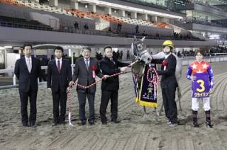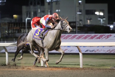 レースは、好スタートから中団でレースを進める展開。3コーナー手前から仕掛けだし、直線では、粘るヴァカンス号(川崎)を捕え、1馬身1/2差をつけて優勝しました(1.43.1)。