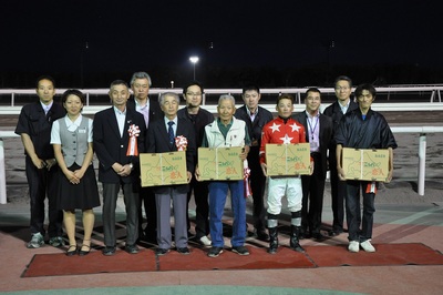 本日のグランシャリオスタジオ(6月26日) 2014.06.26 6月26日(木)、JA平取町「ニシパの恋人」特別のパドックゲストに平取町農業協同組合の内城 春菜様と中鉢 絢様がご出演し、平取町名産の桃太郎トマトの特徴について話して頂きました。 また、JA平取町「ニシパの恋人」特別競走を記念して、来場者先着300名様に「ニシパの恋人」がプレゼントされました。 写真上:中・内城 春菜 氏 右・中鉢 絢 氏 写真中:総合表彰 写真下:「ニシパの恋人」プレゼント