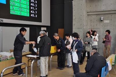 本日、門別競馬場ポラリスドームJBCビジョン下において、真つぶやアポイ米などの地場産品が当たる抽選会を実施しました。