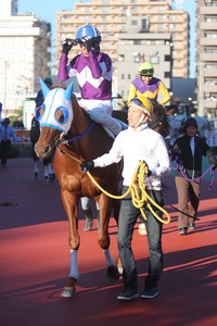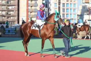 「ホッカイドウ所属では今回が最後の競馬で、この後名古屋に移籍することになっているので、乗り役には前走(道営記念)とは違う、思い切って前に行くような競馬をしてほしいと指示していました。ただ、前には行けても、このメンバーでは終いがね・・。長いこと頑張ってくれた馬ですし、今後また新天地で良い競馬をしてほしいですね。」