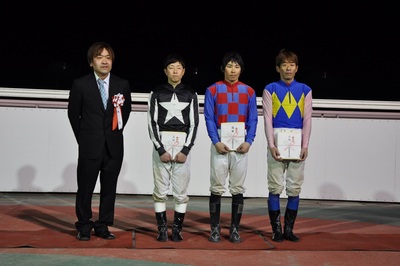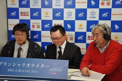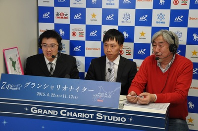 本日のスタジオゲスト(4月23日) その他 2015.04.23 4月23日(木)、みついし和牛肥育組合協賛リーディングジョッキー競走Ⅰ・Ⅱのスタジオゲストにみついし農協青年部の加野 佑輔氏と澤田 祐喜氏がご出演し、みついし牛おいしさの特徴や若手生産者としての想いについて話して頂きました。 また、リーディングジョッキー競走の総合表彰式では、同じくみついし農協青年部の河合 政広氏にプレゼンターを務めて頂きました。 写真上:加野 佑輔氏 写真中:澤田 祐喜氏 写真下:総合表彰