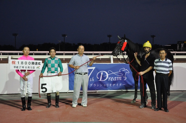 8月5日(水)、門別競馬 第9レースで宮崎 光行騎手(松本 隆宏きゅう舎)がウワサノモンジロウ号に騎乗し、昭和59年のデビューから、12,040戦目で中央・地方通算1,800勝を達成しました(ホッカイドウ競馬では現役2人目 )。
