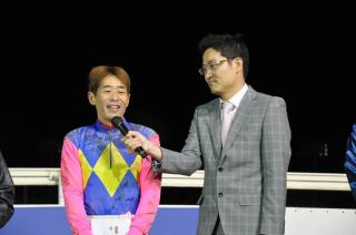 「道中は結構掛かってしまいました。直線では前が開きましたし、最後伸びることはわかっていましたので、最後まで必死に追いました。勝ててホッとしましたし、今後もまだ大きい重賞が残っていますので、最後まで応援よろしくお願いします。」
